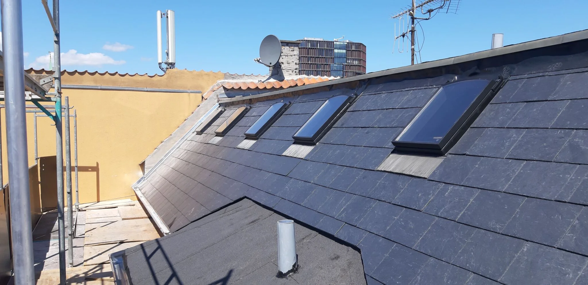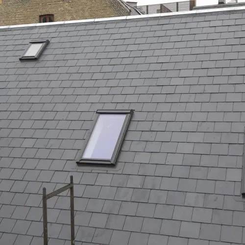 Nyt Naturskifertag, Velux vinduer samt nye zink tagrender.